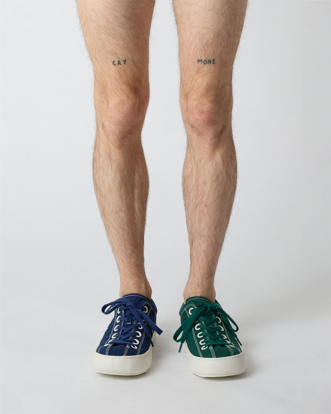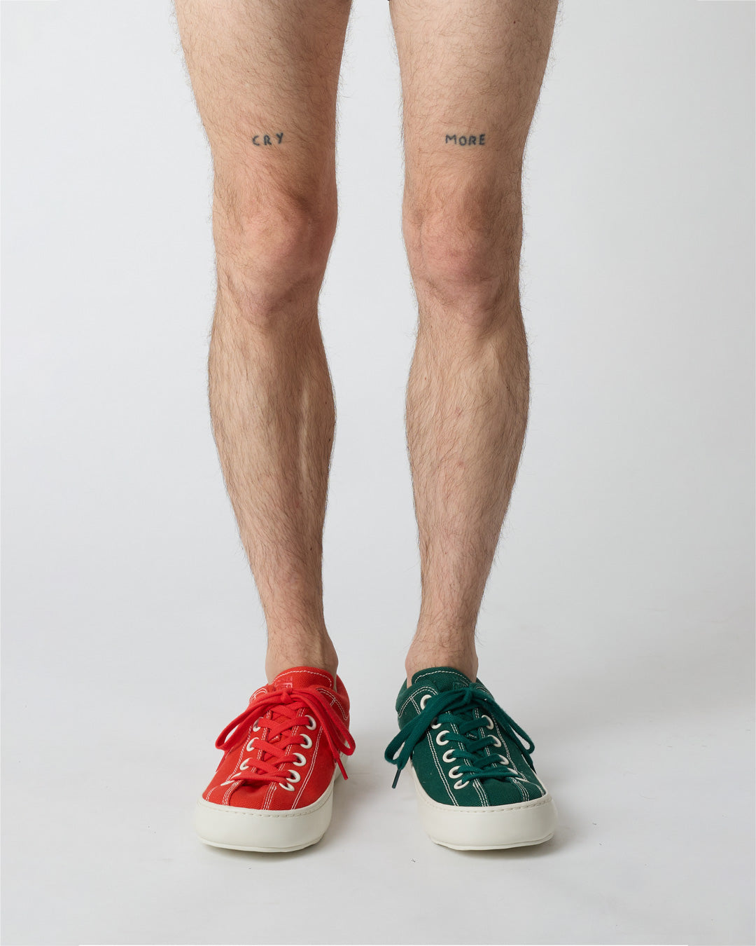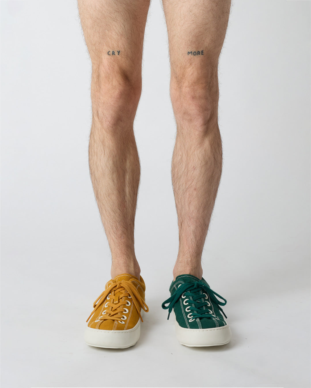 The FORONE collection features a slick laced design that can be worn on either foot, in a matching or mismatched pair. Sold separately in 5 colorways – Rosso, Beige, Verde, Blu, and Senape – wearers can play a color game, with 10 possible color combinations. Buy one, buy five.