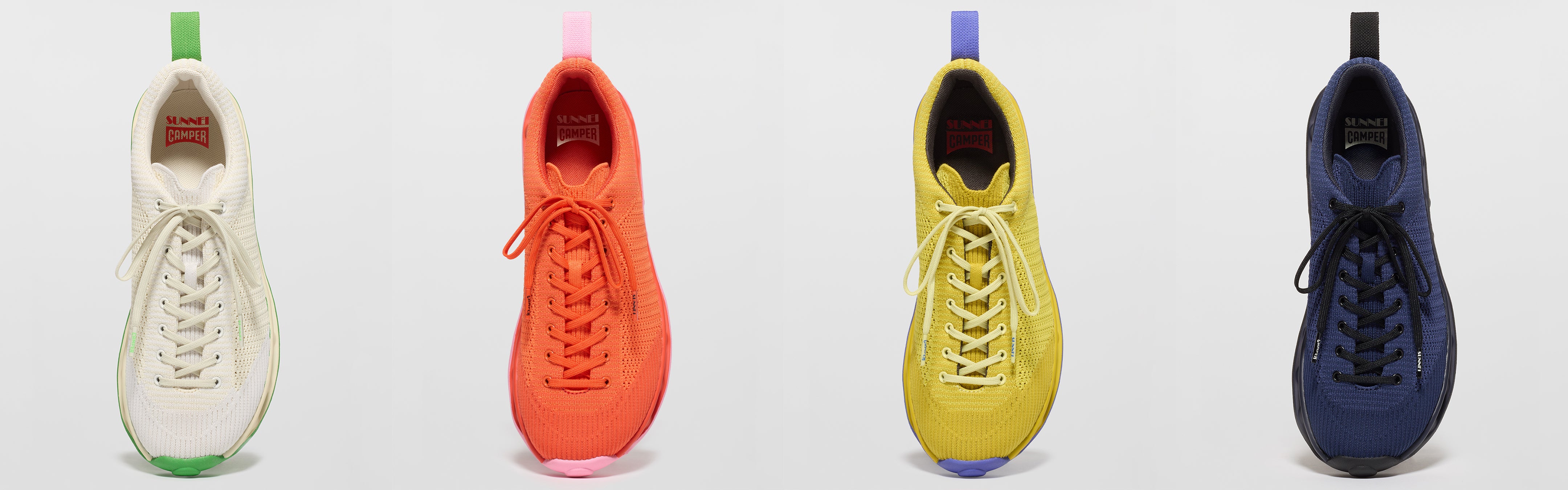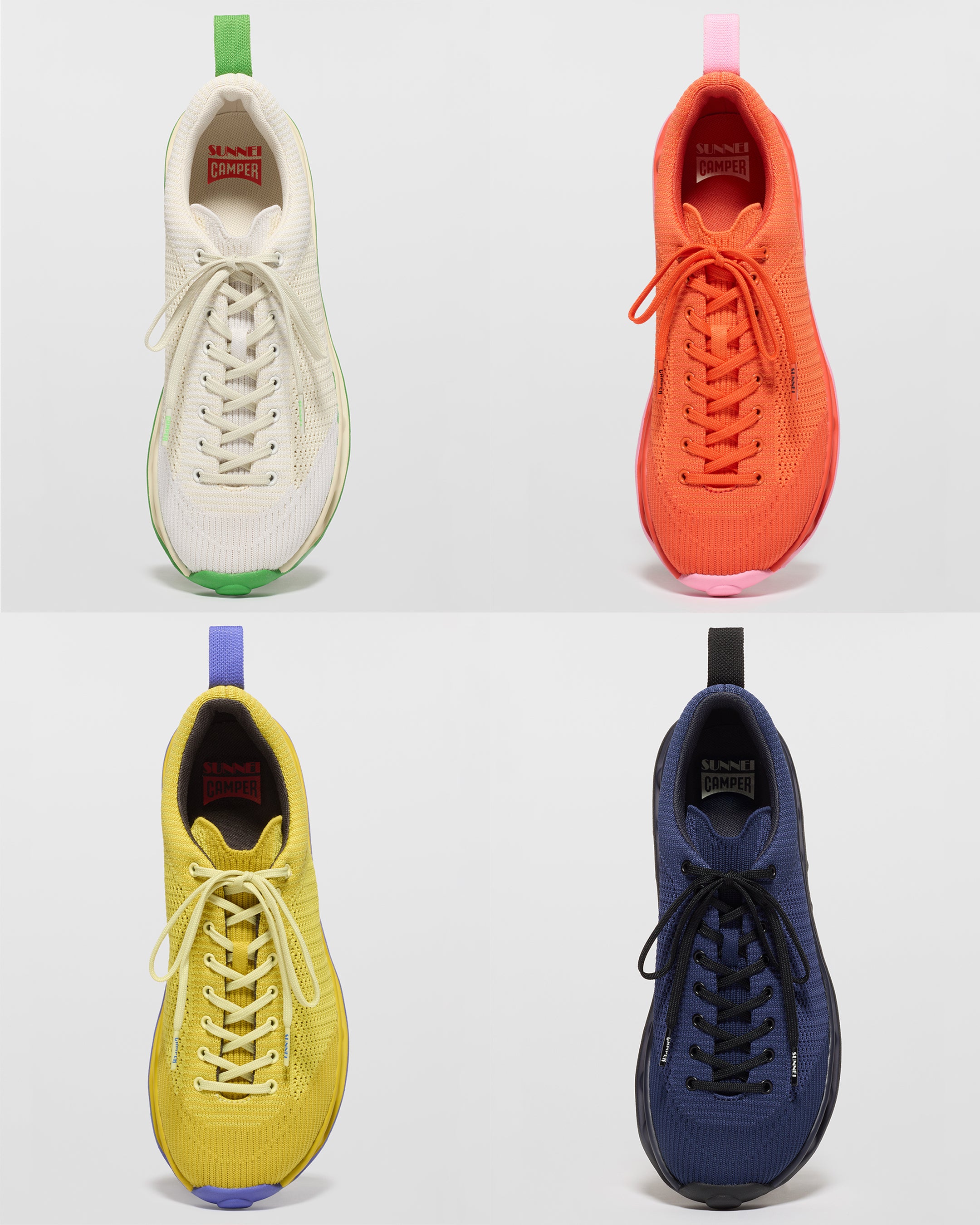 The PELOTISSIMA shoes, the result of the collaboration between SUNNEI and CAMPER, return in new colorways, showcasing their sporty-casual style with an airy design and a distinctive double-studded outsole.